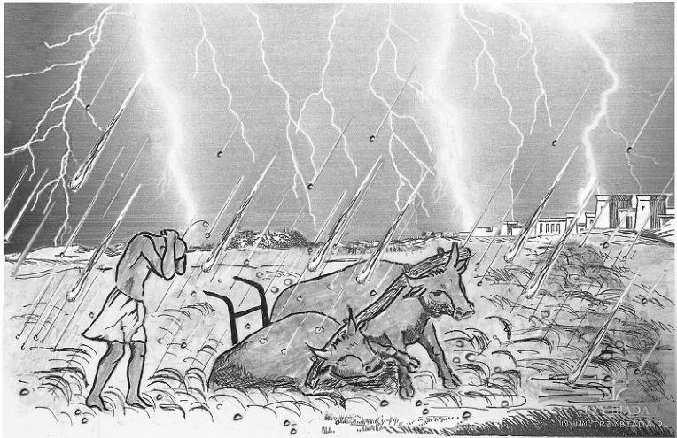 하나님의 말씀을 무시하고 들에 놔둔 가축은 피해를 입었지만 하나님의 말씀을 경외하여 집에 들여놓은 가축은 살 수 있었습니다. (클릭하시면 이집트 인이 쓴 출애굽기에 대한 글을 읽어 보실수 있습니다.)