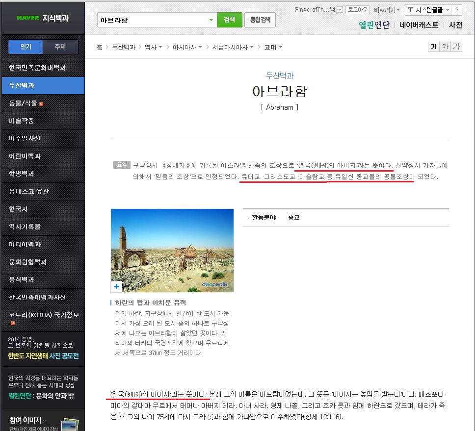 위 사진은 네이버에서 찾은 아브라함에 대한 백과사전 입니다. 먼저 읽어 보시구요.